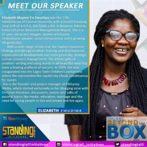 I spoke on the sub-theme of ‘Academic Excellence and Personal Development’. Think Beyond the Box is the theme of the annual youth empowerment event organized by the young NGO, Standing Tall Initiatives. It was big privilege visiting Lagos again to grace the occasion. September brought a lot of great opportunities too. A great thanks to STI for hosting me in their 3rd edition seminar. I thought to share some excerpts. I presented on the area of personal development and academic excellence. Trust me, personal development is a word that encompasses every form of development in the world. Because people make things, and not the other way around, anything can be ‘developed’ if only the ‘person’ is developed. Human resource development has always been a great passion, especially learning and development and organizational development.